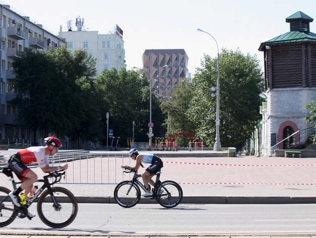 Спортсмены плавали в акватории городского пруда, мчались на велосипедах по центральным улицам Екатеринбурга и бежали вдоль набережной реки Исеть.