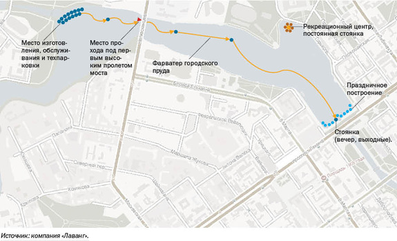 План стоянки и передвижения "баров-мячей" на акватории Исети и городского пруда