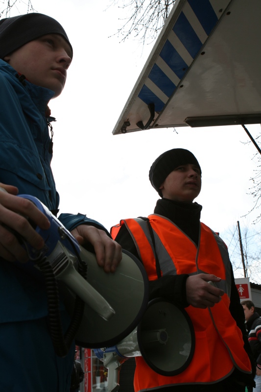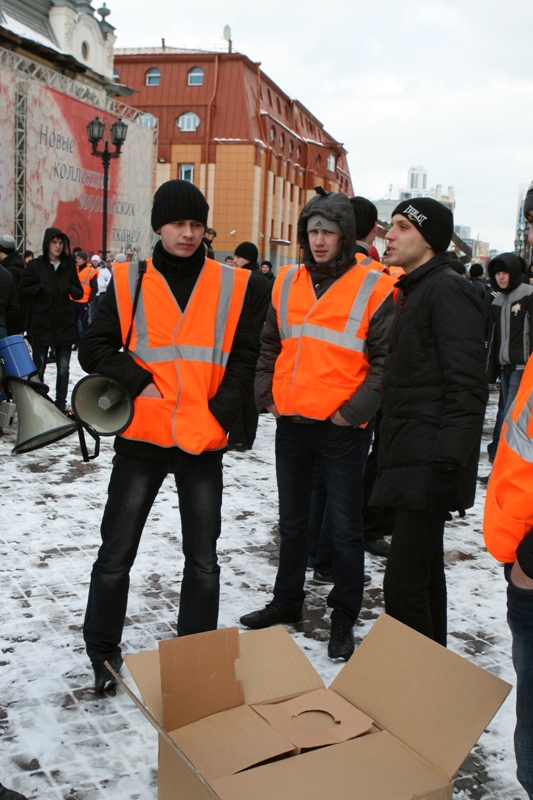 Также сообщается, что организаторы раздают людям деревянные лопаты с лозунгами, мегафоны, вувузелы и оранжевые жилеты.