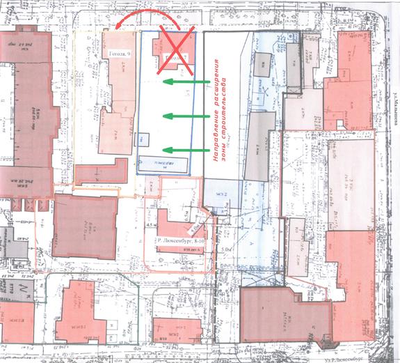 «Строительству второй очереди Покровского Пассажа мешает здание по Гоголя, 7. Мешает, может быть не совсем строительству, а шире - хозяйственному освоению территории. Может быть, на месте памятника планируется парковка или ещё что-нибудь», - пишет он в своем блоге, подкрепляя эту версию иллюстрацией из генплана: