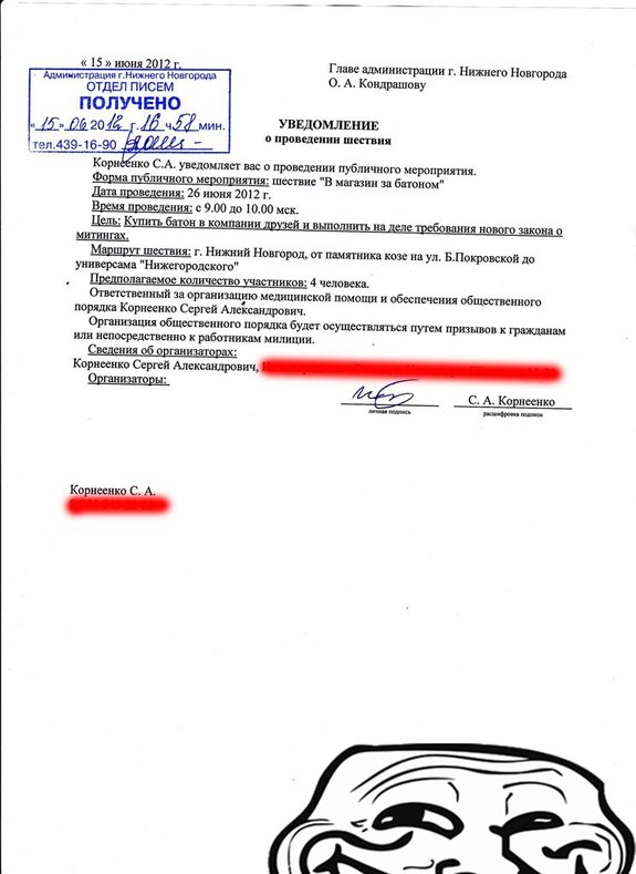 Екатеринбуржцы устроили «итальянскую забастовку» уведомлений. Они направляют в мэрию уведомления о массовых мероприятиях типа похода в кино или осмотра достопримечательностей с друзьями.