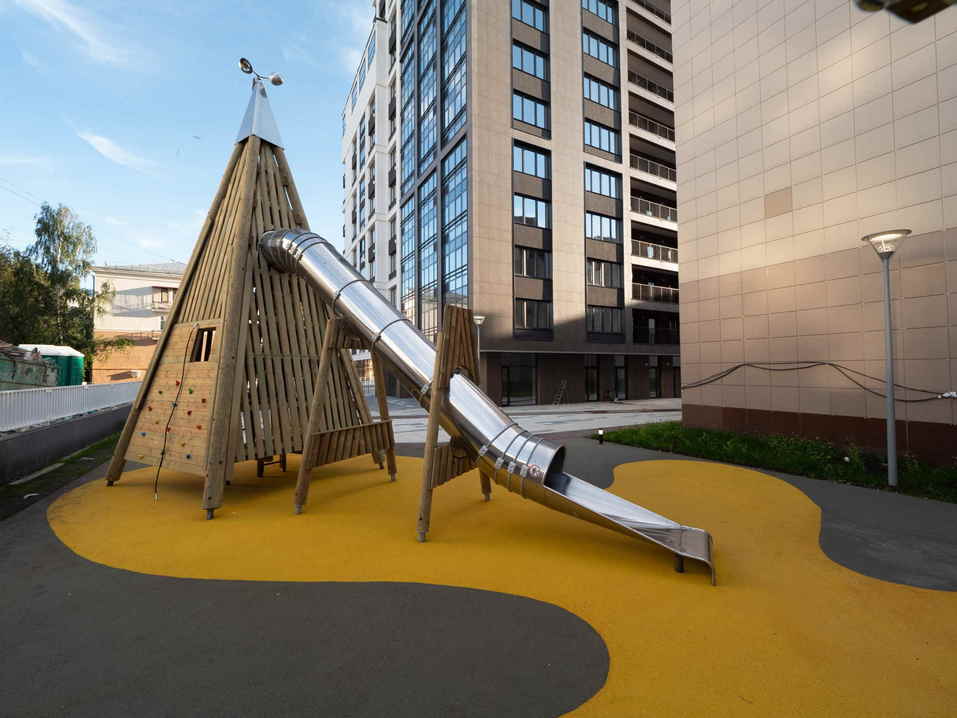 Для комфортного отдыха и занятий спортом в клубном доме обустроены две открытые террасы на 11 и 14 этажах. Лаунж терраса с потрясающими панорамными видами на центр города оборудована лежаками и креслами, столиками с розетками. Здесь жители дома могут не только отдыхать, но и организовать рабочее место на свежем воздухе. Терраса для активного отдыха на 14 этаже представляет собой спортивную площадку с workout и зоной для йоги. Для детей разных возрастов во дворе установлены развивающие игровые комплексы: лабиринт, горки, батут.
