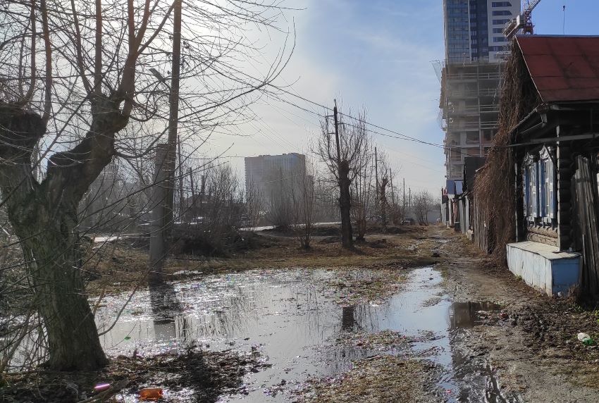 Сейчас на этой территории идет активная стройка — оставшийся частный сектор сменяют многоэтажки, но между домами не везде даже есть тротуар.