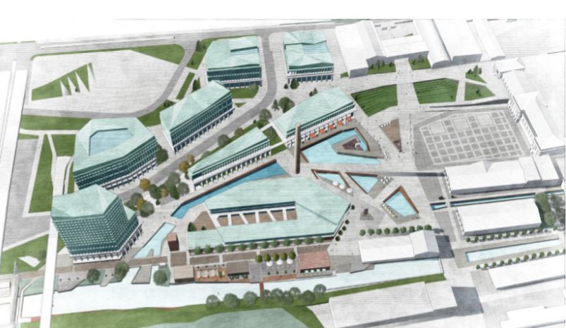 Западный берег Городского пруда (наб. Рабочей молодежи) изменится неузнаваемо: вместо обветшалых двухэтажных домиков и зарослей — великолепные жилые высотки, удобная набережная, — считает мэр.