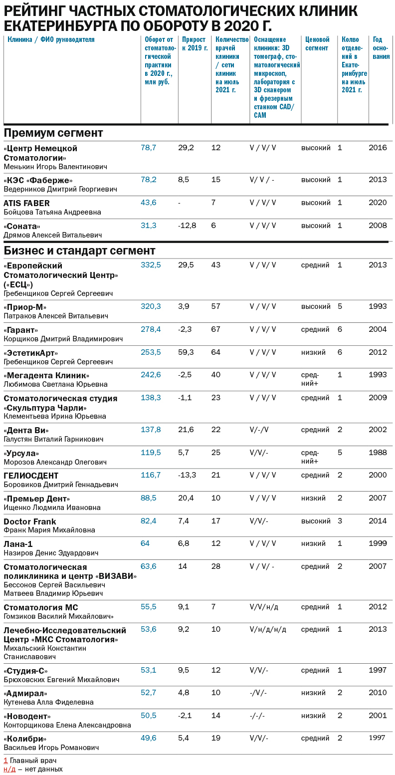 Портал DK.RU составил рейтинг ведущих стоматологических клиник Екатеринбурга по обороту услуг в 2020 г. по данным системы SBIS.
