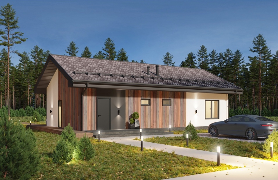 Проект одноэтажного энергоэффективного дома BASIS площадью 100 м2 ярко демонстрирует преимущества решений проекта Solen.House.