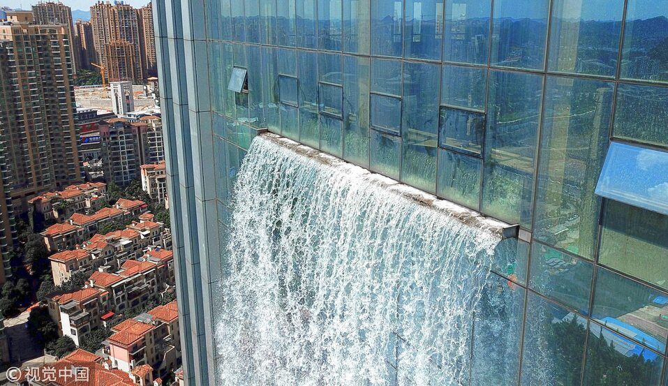 Подобные проекты в мире уже есть. Небоскреб со 100-метровым водопадом на фасаде в 2018 г. был построен в китайском городе Гуйян. Вода с фасада стекает в большой резервуар у подножья здания – оттуда ее подают наверх четыре мощных насоса.