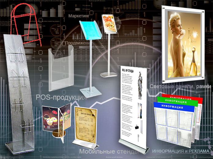 А последнее время компания стала продавать не только материалы, но и готовые продукты для рекламного рынка. Например, световые панели, рамки с клик-системой для быстрой смены информации, визитницы, тейбл-тенты и многое другое.
