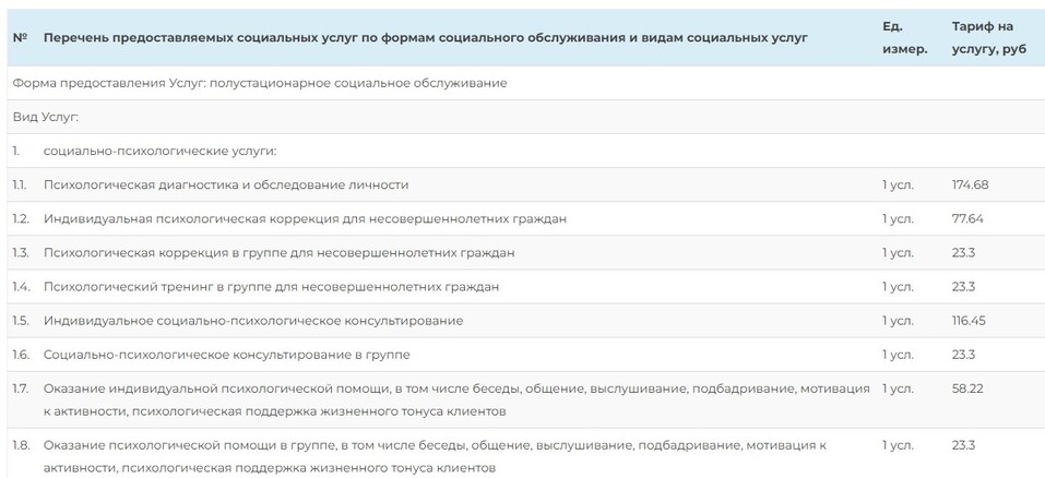 Тарифы, по которым государство оплачивает бизнесу услуги по социализации и реабилитации детей с особенностями развития