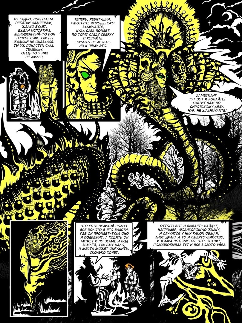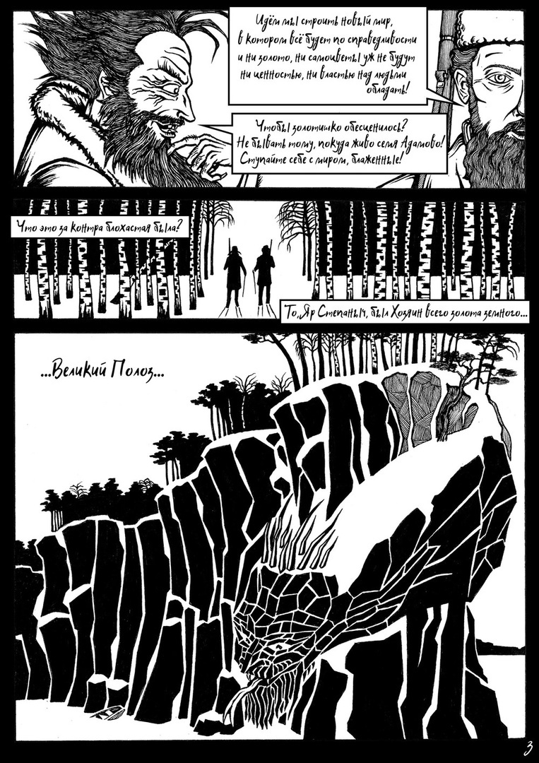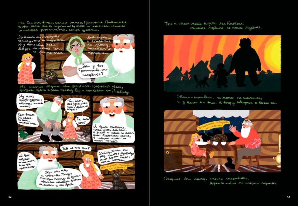 — По изначальной задумке художник должен был быть один, но он исчез из поля зрения. В книге есть только один его Сказ. Графический роман — это большой объем работы, это вызов и это звучит серьезно, и я подумала: наверное, одному человеку не справиться. Тогда мы решили, что наш графроман будет антологией художников со всей страны.