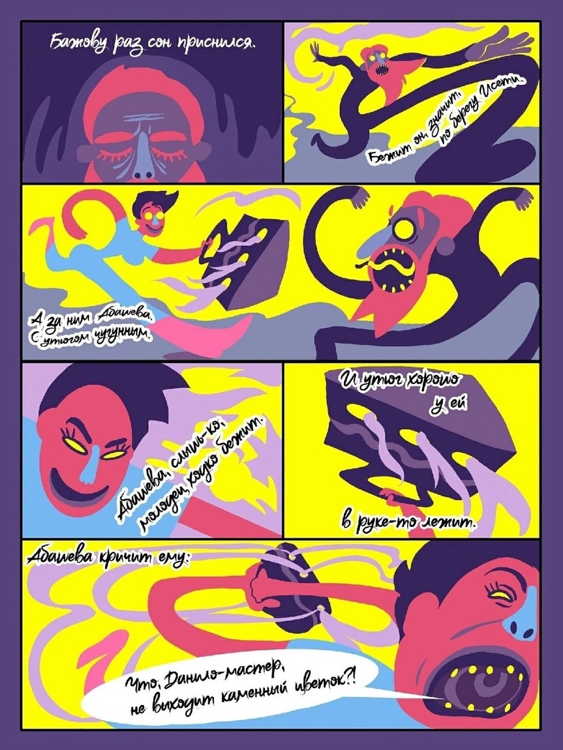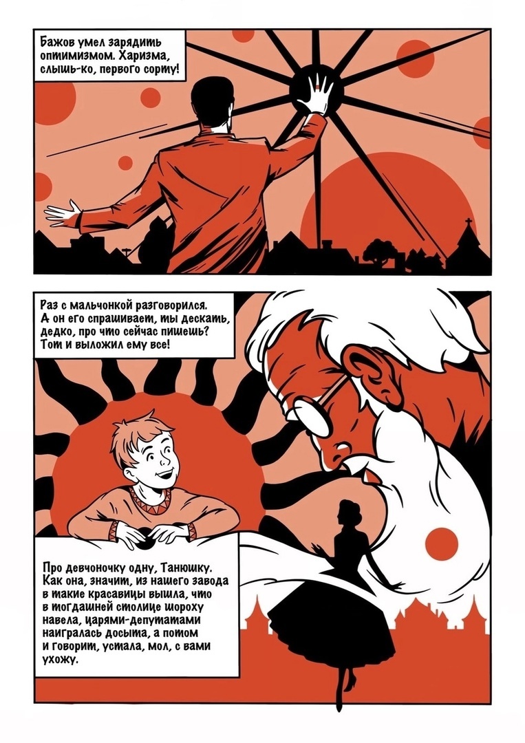 Цель проекта была обозначена как просветительская — популяризация Бажова и графического искусства в виде комиксов. Это был вызов: открыть для современников емкий и сложный язык Бажова. Книга должна была стать и стала мостиком для молодежи к Бажову, который для нее пыльный, непонятный и какой-то старорусский. Мы решили его преподнести на современном языке с помощью талантливых художников и сокращения оригинальных текстов.