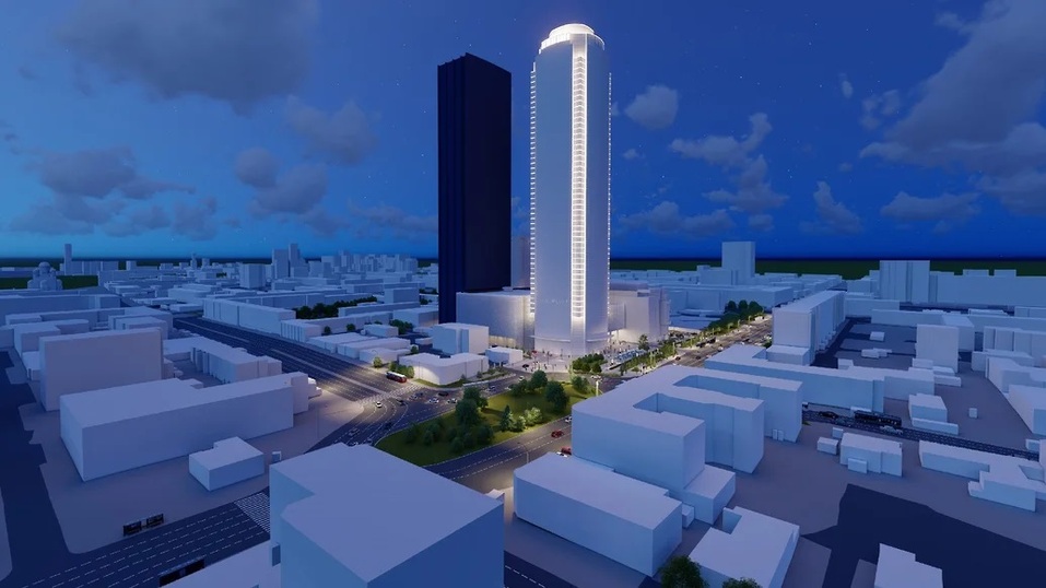 Небоскреб разместится в границах улиц Малышева — Карла Либкнехта — проспекта Ленина — улицы Красноармейской на участке в 0,35 га. Работа над объектом должна начаться в этом году, завершение строительства намечено на 2027 г.