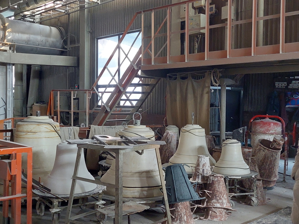 Сейчас на предприятии работают два цеха — большой и малый, есть кузница и помещение, где готовятся узоры для колоколов. Кстати, это единственное в России колокольное предприятие с кузницей на своей территории.