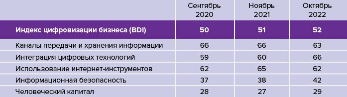В целом индекс цифровизации малого и среднего бизнеса осенью 2022 г. составил 52 п.п.: