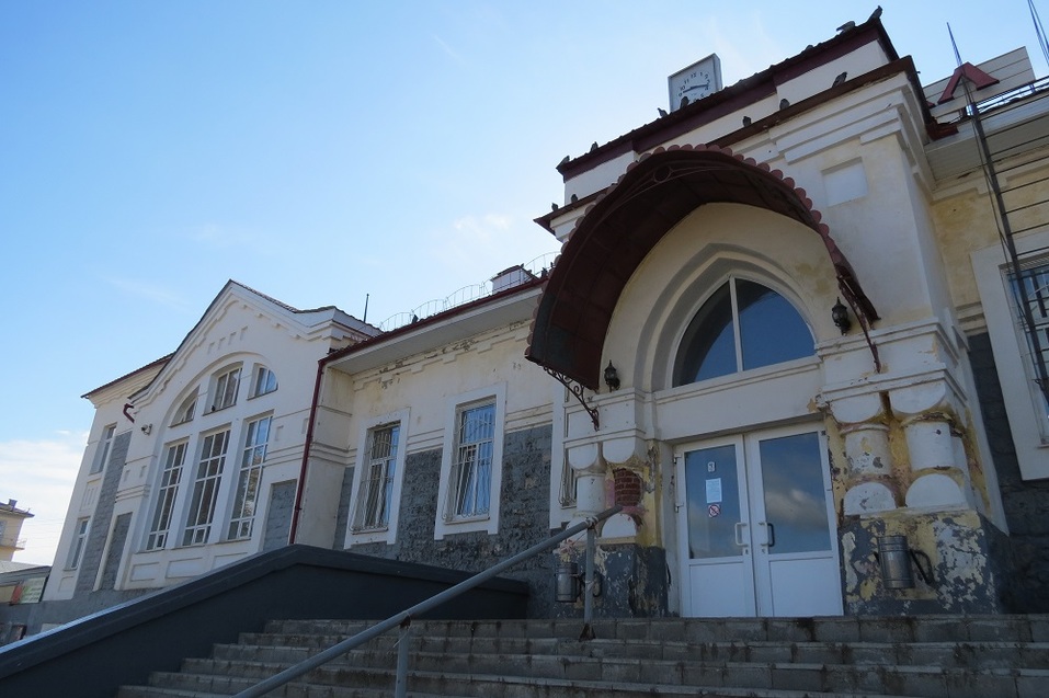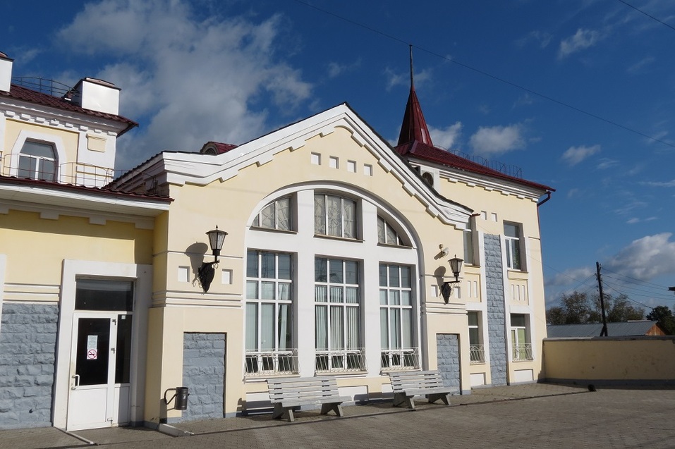 Дорога выводит к зданию железнодорожного вокзала. Прекрасный русский модерн.