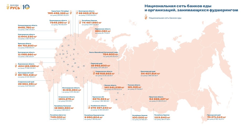 — В России наш фонд стал первым банком еды. Сегодня, по данным Российской ассоциации электронных коммуникаций, банк еды «Русь» осуществляет около 90% фудшеринга в благотворительном секторе.