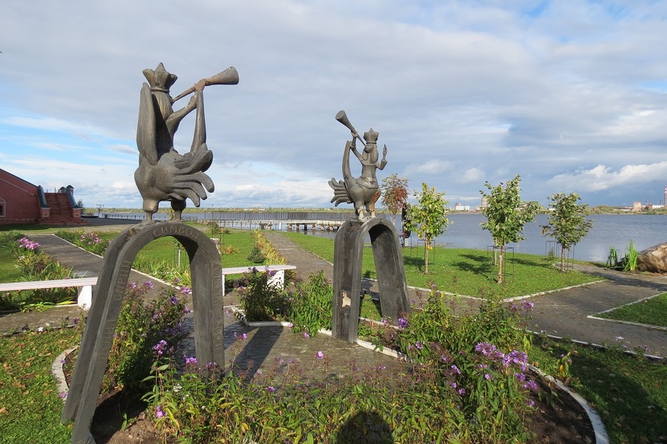 Прощаемся с кудесницами, делаем круг по территории заповедника. Кстати, здесь придумана интересная подача для настороживших меня вначале руин. Они часть парка с современной скульптурой. Вероятно, именно этот ход снимает чувство тревоги от вида полуразрушенных построек.