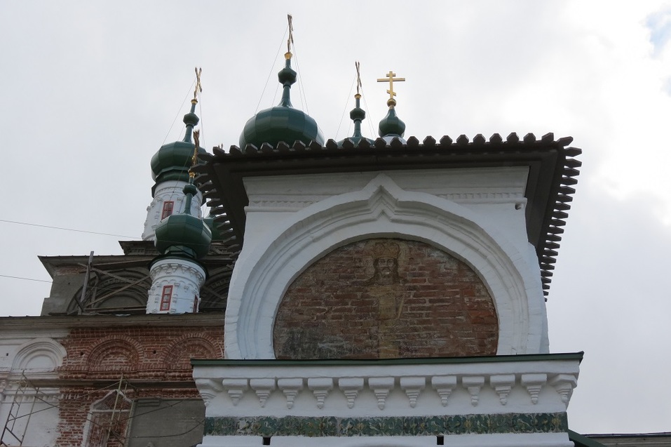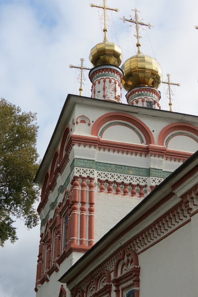 Эти яркие элементы чем-то напоминают расписные пряники и те нарядные изразцовые печи, что мы недавно видели в Усолье. Нескромная декоративность — свойство русской архитектуры XVII века. Наверное, это самая сказочная страница во всей истории русского искусства.