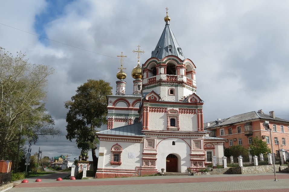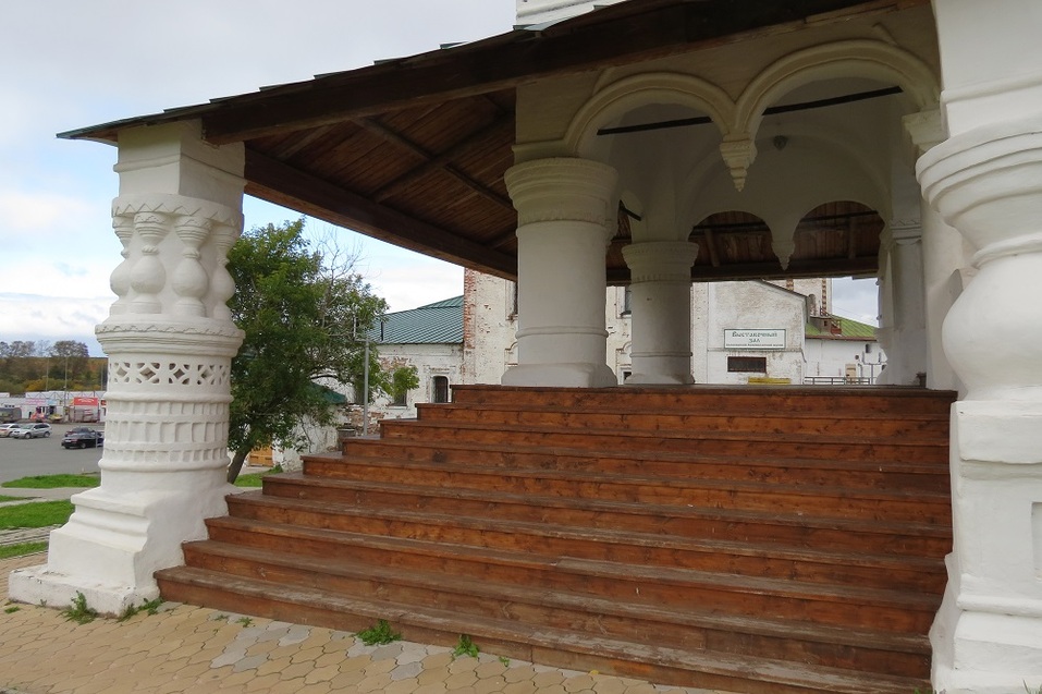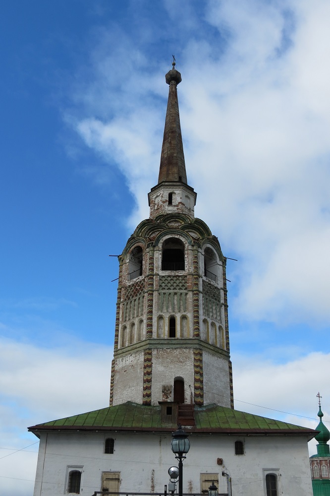 В этот день мы ограничились наружным осмотром построек исторического ядра Соликамска. Помимо Троицкого собора запомнился расположенный неподалеку «Дом воеводы» и жизнерадостная полихромная Церковь Богоявления, на фоне традиционно белых стен которой выделяются неожиданно яркие архитектурные детали (пояски балясин, наличники, пилястры).