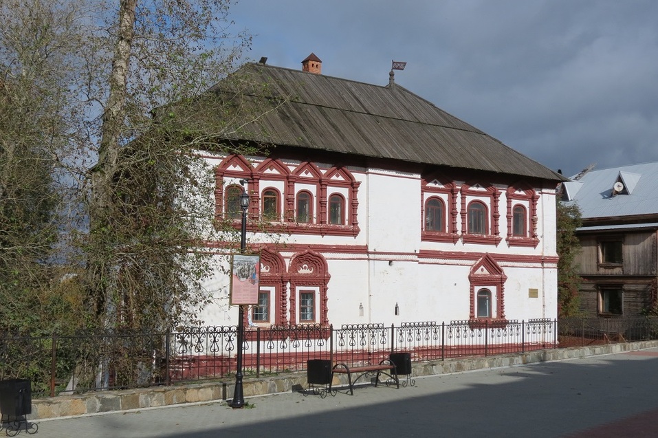 После ночевки в Березниках в уютной гостинице квартирного типа (гостиница «Аэлита», ул. Пятилетки, 116А) мы переправляемся по мосту через Каму и оказываемся в Усолье. Наша цель — историческая часть города. Предварительное интернет-знакомство слегка озадачило. Здесь должно быть несколько отреставрированных сооружений, остальные же представляют собой руины. Как удалось выяснить позднее, эти остатки зданий в стиле классицизма — усадьбы бывших владельцев солеварен. Признаться, руины я совсем не люблю. Кроме разве что античных. Заброшенные усадьбы, как правило, имеют пугающий вид, особенно в дождливую погоду, которую предрекает нам Всезнающая Паутина. Решаем для себя, что посмотрим лишь то, что восстановлено, а в руины или, вернее, в развалины углубляться не будем.