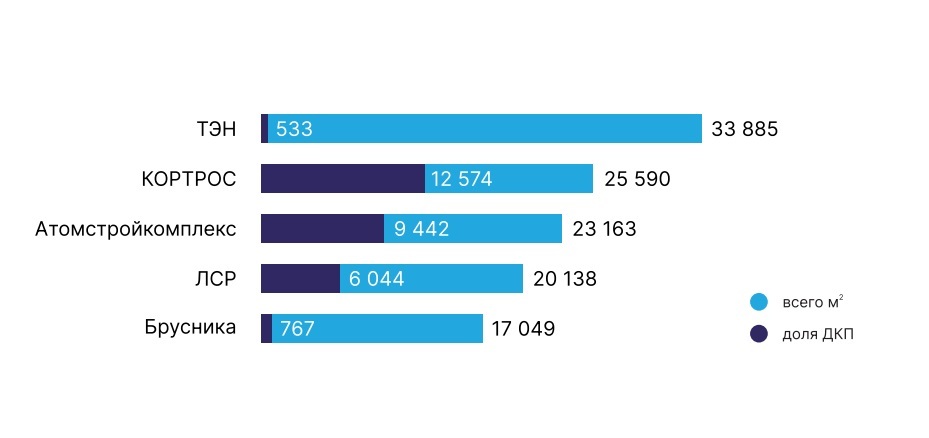 Лидер рынка, TEN Девелопмент, за I квартал 2023 г. реализовал более 33,8 тыс. кв.м. жилой недвижимости. Наиболее востребованными объектами застройщика оказались ЖК «Русь» на ВИЗе, квартал «Екатерининский парк» в центральной части города и ЖК «Основинские кварталы» в Пионерском районе. Сегодня в стадии реализации у застройщика находится 8 жилых комплексов, представленных в классах комфорт и бизнес.