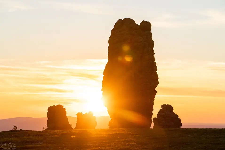Перенесемся на несколько сот километров севернее и окажемся на плато Маньпупунёр, наверное, в самом необычном месте Урала. Эти места я в шутку называю «Скучный Урал». Потому что здесь практически нет никаких выдающихся форм рельефа. Горы пологие и сглаженные. Но они как будто специально созданы, чтобы подчеркнуть красоту столбов-останцев, взметнувшихся вертикально на 30 метров. Предавьте себе пологие тундровые хребты и на них стоят такие вот скальные девятиэтажки. Это производит неизгладимое впечатление на всех.