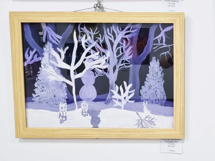 Здорово, когда свои работы можно показать, когда они не пылятся дома в шкафу. Поэтому, когда меня пригласили на выставку, я очень обрадовалась. Вместе с тем, я чувствую волнение, ведь люди ходят и смотрят на твои работы. Мне самой из всех отобранных для конкурса работ нравится моя самая поздняя картина — «Темный лес». Мы рисовали ее на одном из уроков, и, по-моему, у меня хорошо получилось, — сказала Варвара.