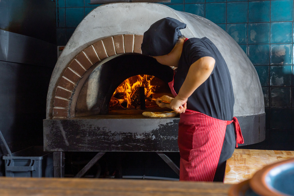 В заведении два зала. Большой подойдет для любителей быть в эпицентре событий. Здесь расположена открытая кухня с помпейской дровяной печью — можно в онлайн-режиме наблюдать, как пышущие жаром хачапури появляются на свет