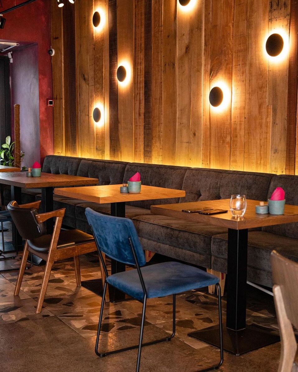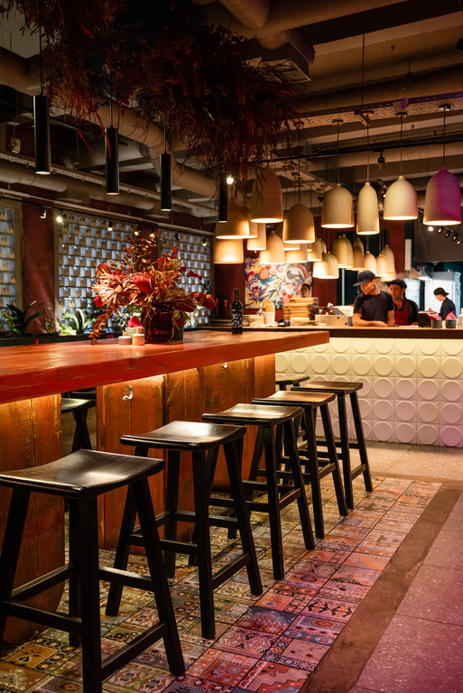 В итоге в Pumpula можно ощутить собирательный образ модной современной Грузии: приглушенный акцентный свет, большое количество зелени, состаренные фактуры и текстуры в сочетании с современной мебелью, отсылки к советскому прошлому и модернистской архитектуре. Плюс небольшое количество традиционных элементов, таких как ковры и кувшины.
