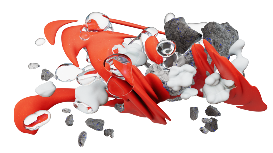 Метафора о четырех элементах — «вода, камень, огонь, воздух» — стала основой визуального языка для креативного кластера. Мы решили использовать несколько вариантов графической интерпретации — 2д и 3д.