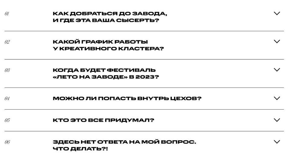 Продолжением концепции четырех элементов стал и первый сайт кластера. Мы презентовали его в начале летнего сезона и уже ощутили, как ускорилась связь с гостями и партнерами. Теперь нам не нужно составлять презентации или рассказывать о проекте — мы просто отправляем ссылку на раздел, где структурирована основная информация. Еженедельную афишу смотрят 3-4 тыс. человек. Через формы обратной связи мы получаем заявки на коллаборации, волонтерство, проведение мероприятий и спонсорство. Гости знакомятся с историей завода и подписываются на рассылку о предстоящих мероприятиях.