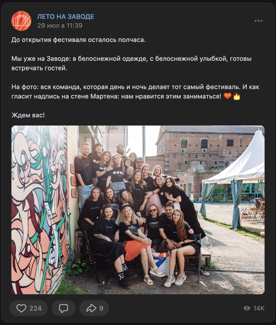 Ключевой вызов для проекта «На заводе» — организация SMM-отдела. Частая ошибка предприятий — один сотрудник совмещает функции SMM-специалиста, копирайтера и проводит рассылки анонсов для СМИ. Команда Завода не стала исключением.