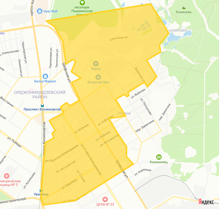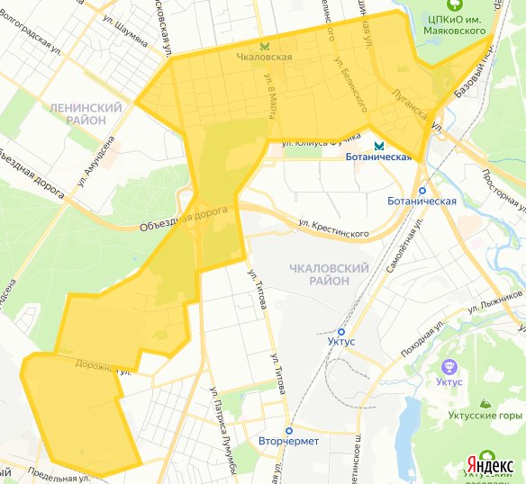 Границы: части Ленинского, Октябрьского и Чкаловского р-на