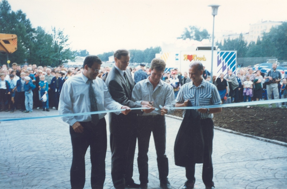 Фото: открытие подземного перехода на Плотинке в 1998 году (фото из архива компании «Атомстройкомплекс»)