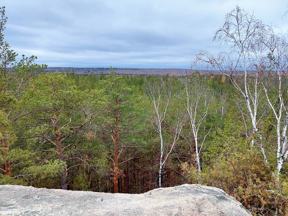 В этих местах был Дмитрий Мамин-Сибиряк. Он писал, что с вершины этих скал виден Верх-Исетский пруд. Сейчас, очевидно, горы стали ниже и сильнее поросли лесом.