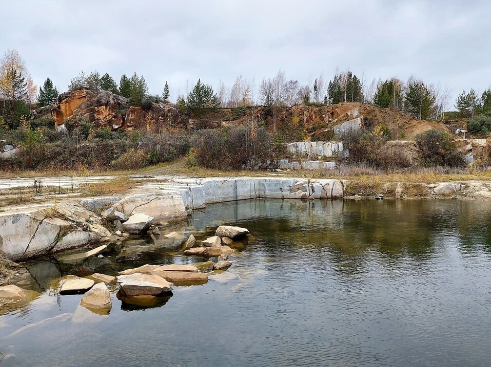 Карьер сейчас затоплен. Здесь была откачка воды и искусственный водопад. В одну из зим система откачки перемерзла и карьер затопило полностью. Под толщей воды осталась большая пила, которой напиливали блоки, и польский экскаватор. Откачивать пока не хотят.