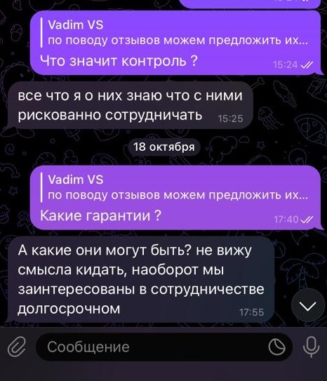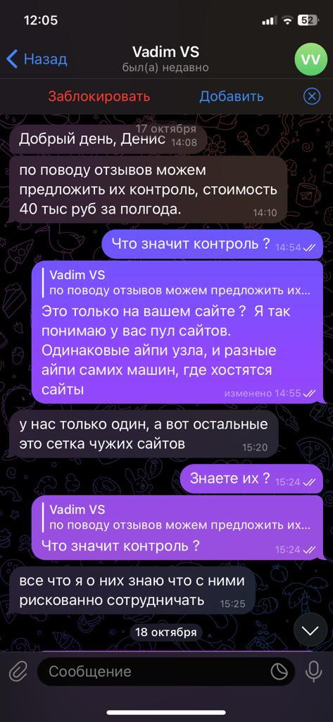 Фото: скриншоты переписки с предполагаемыми админами сайтов с сомнительными отзывами