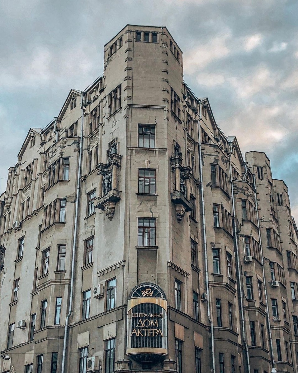 Спокойно прогуливаясь по его тротуару, мы увидели дом Хитрово, где в 1831 г. после женитьбы жил Пушкин, а также «Дом с рыцарями» (доходный дом 1914 г. постройки), вдохновлявший Михаила Булгакова. Сейчас здесь располагается Центральный дом актера.