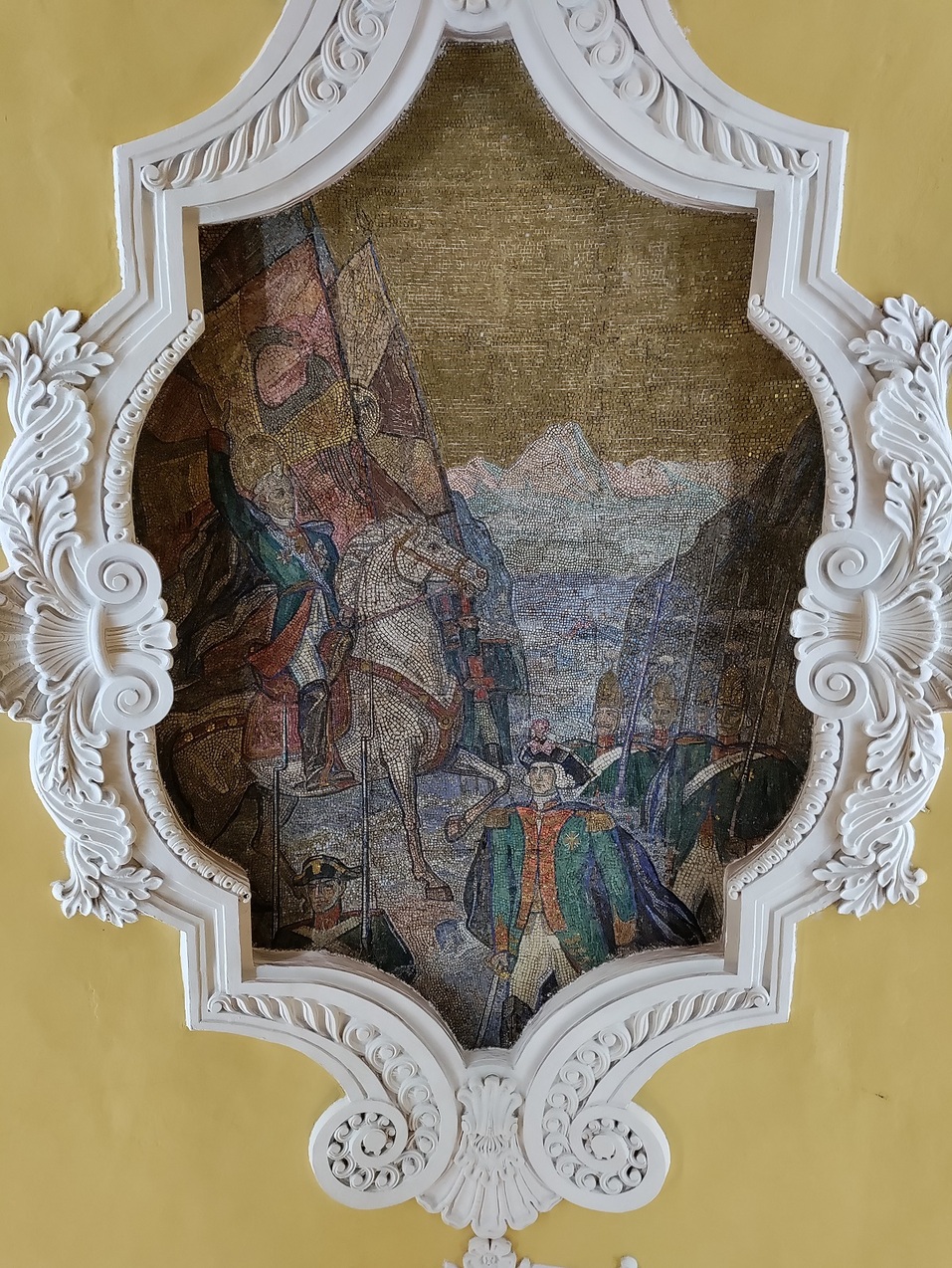 Панно этой станции выполнены по эскизам монументалиста Павла Корина, имевшего за спиной школу палехских мастеров-иконописцев и дореволюционный опыт росписи соборов.