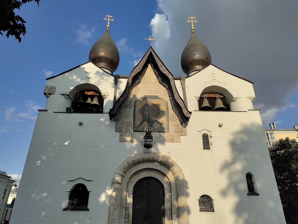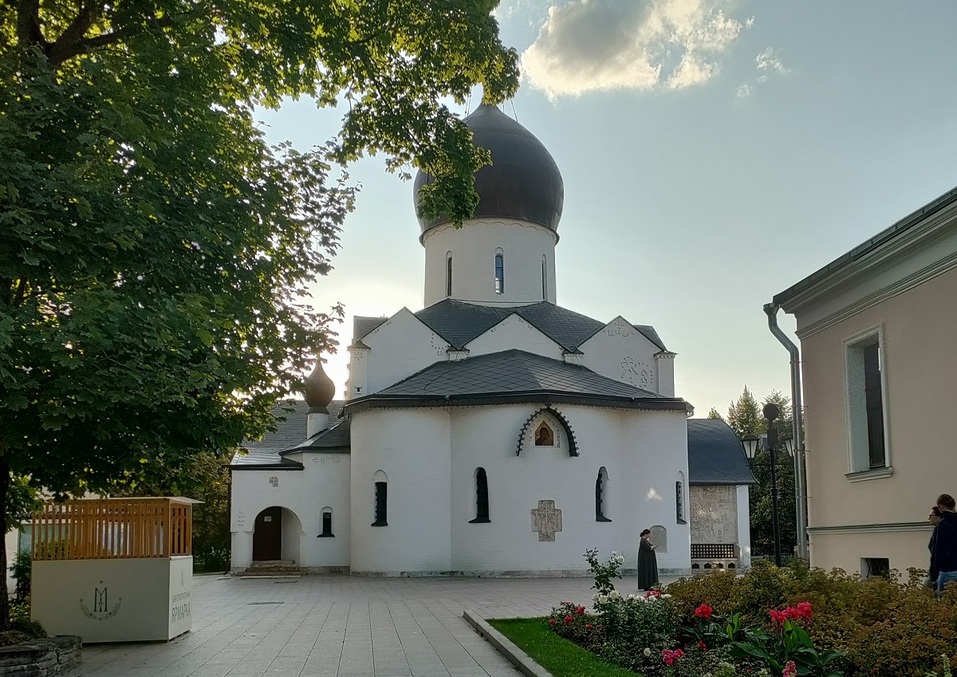 Такие, на первый взгляд бесцельные, прогулки по Москве всегда приносили чудесные открытия. Однажды, исследуя улицу Большая Ордынка, я неожиданно для себя заметила в глубине квартала храм, который показался совсем не московским. Он больше напоминал образцы псковской архитектуры. Я решила подойти к нему поближе и обнаружила, что он является частью комплекса. Так я оказалась на территории Марфо-Мариинской обители.