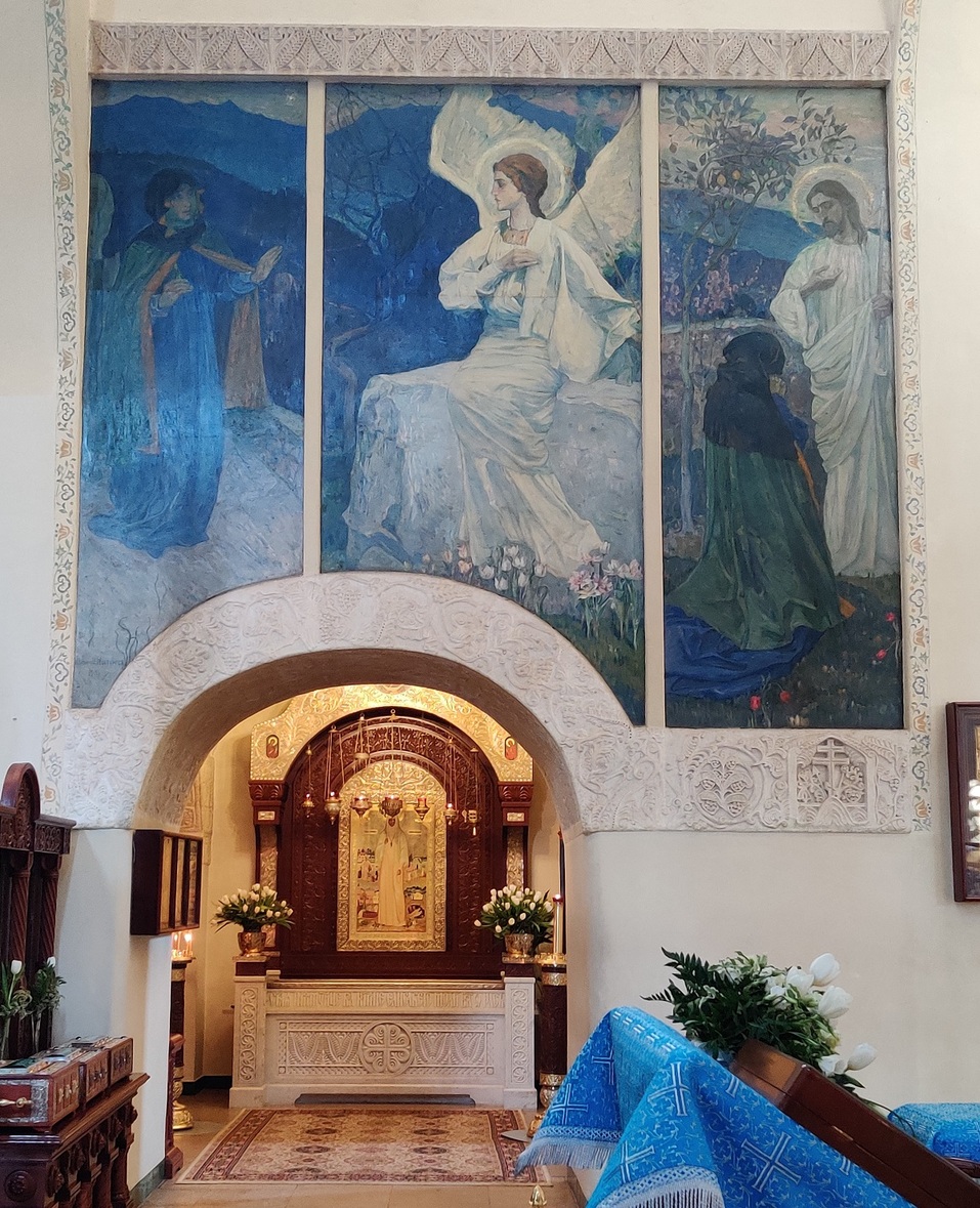 Фантастические по красоте росписи собора выполнены художником Михаилом Нестеровым. Библейские сюжеты художник поместил в пейзажи со среднерусскими березками и осинками.