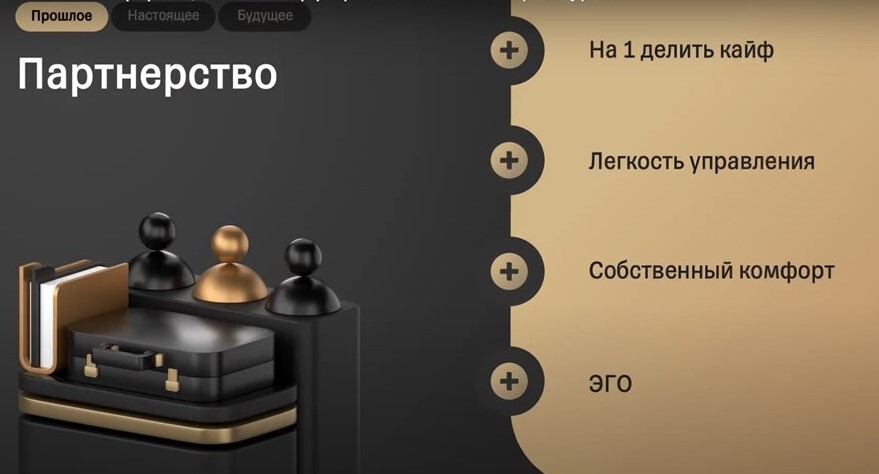 Кроме того, есть личная стратегия и стратегия собственника бизнеса, который должен расти. Это разные вещи. У вас должно быть понимание, каким будет рынок через пять-семь-десять лет (в зависимости от ниши), и как вы там окажетесь. Причем в двух ипостасях: вы как человек и вы — ваша компания. Возможно, ваши пути будут разными. Возникает тема поиска партнера по бизнесу.