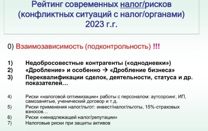 Что касается налоговых рисков, они с прошлого года серьезно не поменялись: