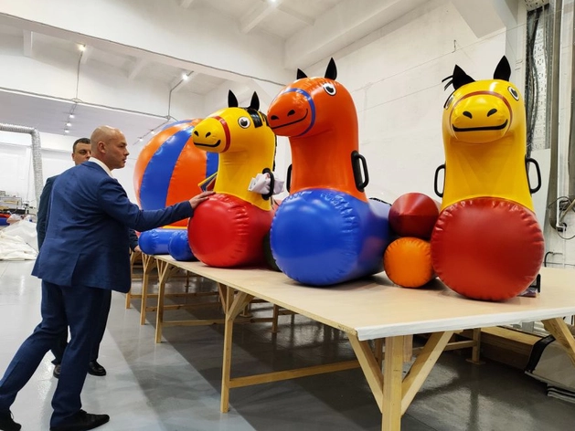 На его предприятии уже выпускают надувные костюмы и декорации к праздникам. Ежедневно на производстве изготавливают около 50 изделий, которые продаются в России и за рубежом.