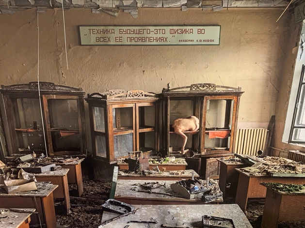 «Свойства тел, стремления души» — представление фотокниги Александры Хлебниковой. Вдохновившись фильмом Андрея Тарковского «Сталкер», автор в 2023 г. создала серию фотографий в Юрьевце Ивановской области, где режиссер провел детство. С 1990-х гг. город постепенно приходил в упадок, а сегодня там не осталось ни одного производственного предприятия. Десятки заброшенных покинутых зданий вдохновили художницу, проникая в эти пространства, она сумела почувствовать душу, которая еще теплится в них.