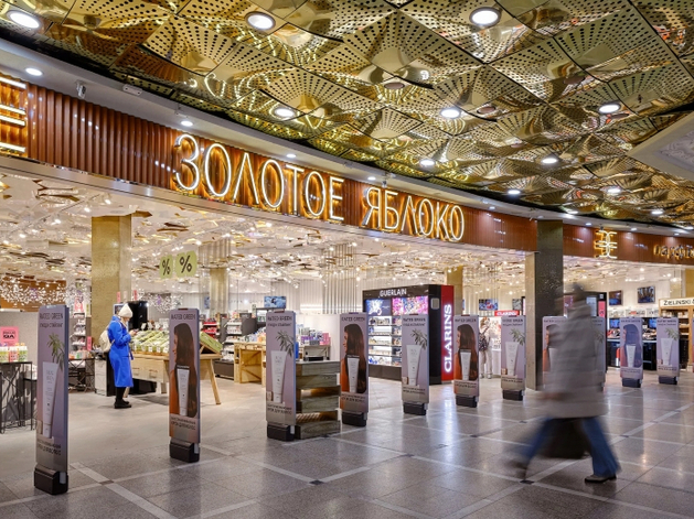 Кроме того, сеть расширила ассортимент, введя в него некосметические категории, например одежду, обувь и украшения. Всего в «Золотом яблоке» представлено около 4500 брендов, из них 200 продаются на эксклюзивных условиях.