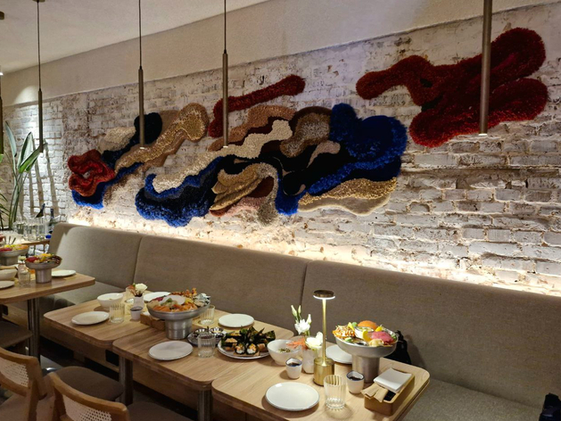 В основе ребрендинга была задача создать светлое пространство, с атмосферой культовых заведений Европы, но не связанное напрямую с морепродуктами. С задачей справилась дизайнер Юлия Аристова, сделав интерьер более теплым и душевным. Меню же, напротив, пополнилось экстравагантными роллами и хэндроллами, а также блюдами из камчатского краба.