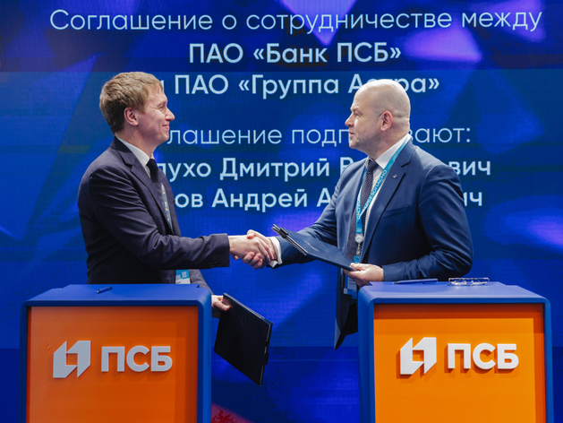 Старший вице-президент, руководитель блока информационной безопасности ПСБ Дмитрий Миклухо и заместитель генерального директора по продажам «Группы Астра» Андрей Климов подписали соглашение о стратегическом партнерстве на полях Уральского форума «Кибербезопасность в финансах».