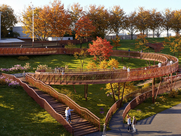 200-метровая лестница с пандусом необходима, чтобы в локацию могли комфортно попадать маломобильные граждане, а также родители с колясками, пожилые люди и дети. Цена вопроса — 34 млн руб.