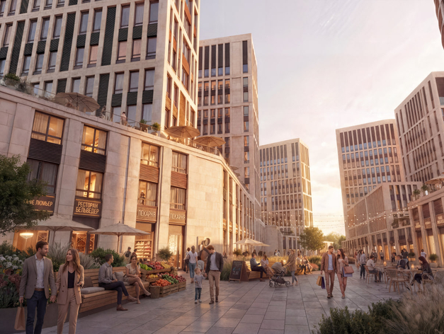 Концепция, разработанная компанией, предполагает значительное переосмысление территории. Часть наземных парковок демонтируют, освободив место для прогулочных зон и общественных пространств: здесь планируют высадить деревья, установить скамейки, а также создать неглубокий водный объект.